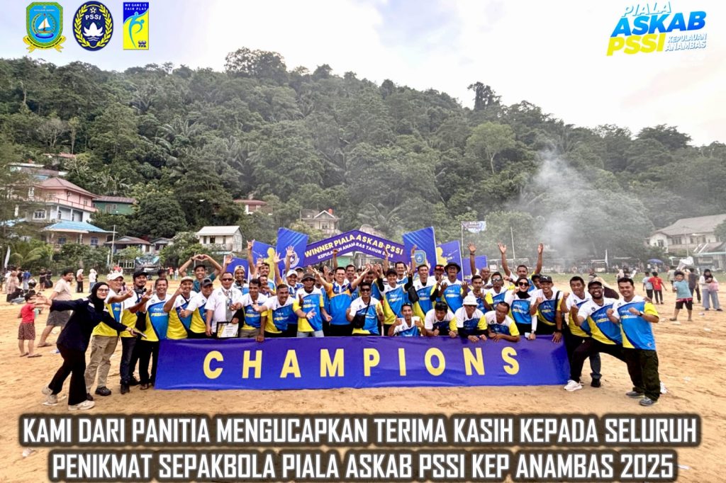 ANAMBAS, JABATNEWS.COM —Turnamen sepak bola Piala ASKAB PSSI Kabupaten Kepulauan Anambas Tahun 2025 resmi berakhir pada Minggu (26/10/2025) sore di Lapangan Sulaiman Abdullah, Tarempa. Ajang bergengsi tingkat desa ini berlangsung hampir satu bulan sejak pembukaannya pada 1 Oktober lalu.